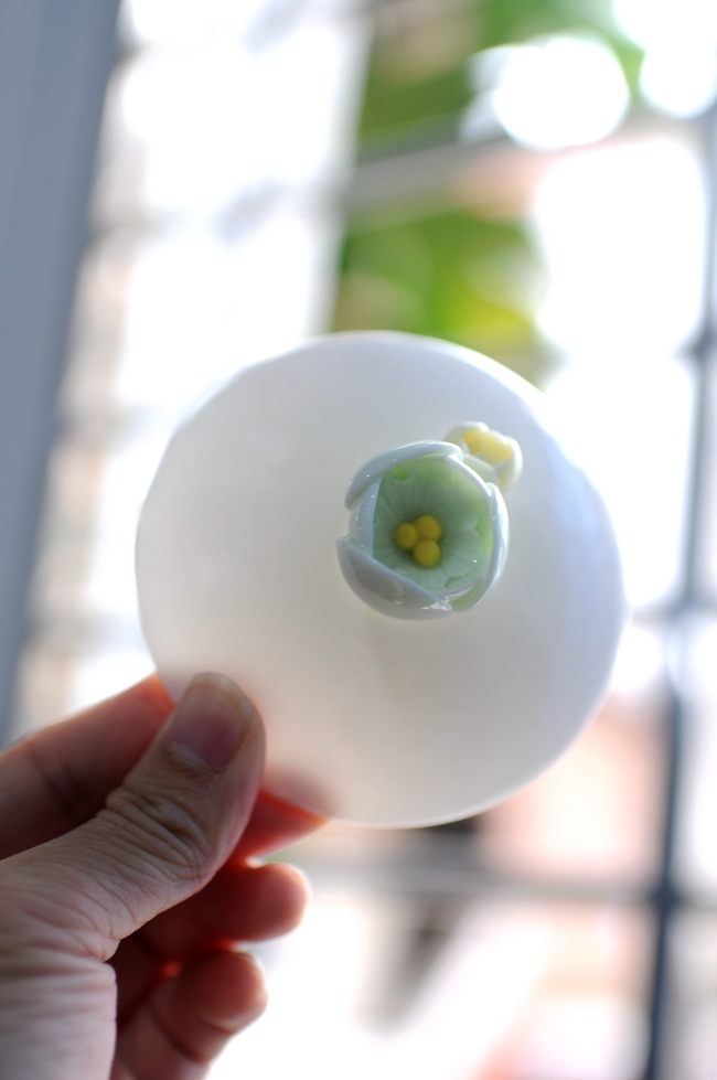 瓷花純手工捏制,細(xì)膩精致、以假亂真,每片花瓣層層疊疊,繁復(fù)但線條流暢,美不勝收。