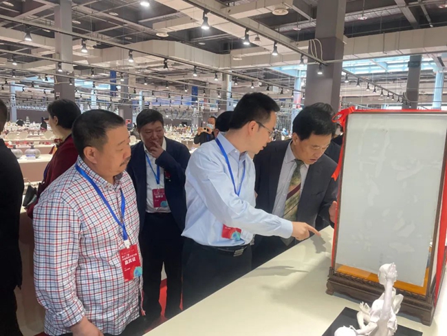11月7日上午,第十二屆中國陶瓷藝術(shù)大展開幕。中陶瓷協(xié)會(huì)理事長杜同和帶領(lǐng)中陶瓷協(xié)會(huì)成員一同參觀了第十二屆中國陶瓷藝術(shù)大展的德化瓷展臺(tái)。參觀中,縣政府副縣長洪仰行向中陶瓷協(xié)會(huì)理事長杜同和一行詳細(xì)介紹了德化此次參展的作品,中陶瓷協(xié)會(huì)理事長杜同和對(duì)德化瓷給予了高度評(píng)價(jià),并希望德化大師開拓創(chuàng)新,爭取創(chuàng)作出更多更好的作品,為“中國白·德化瓷”作出積極貢獻(xiàn)。