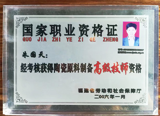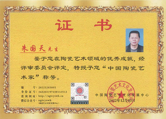 朱國天,從小就喜歡中國陶瓷文化,1992年于學(xué)校畢業(yè)后分配到江西省黎川縣華山瓷廠技術(shù)科,擔(dān)任技術(shù)員; 1993年至1997年受聘德化永盛瓷廠、秦盛瓷廠、福德瓷廠技術(shù)人員,主要從事顏色釉料的研究及陶瓷作品設(shè)計(jì)開發(fā)。1998年開始創(chuàng)業(yè),主營研發(fā)色釉料、陶瓷產(chǎn)品; 2006年創(chuàng)辦福建省德化縣科力陶瓷廠,2009年承擔(dān)福建省科技計(jì)利項(xiàng)目《中溫顏色釉的制備和應(yīng)用》項(xiàng)目負(fù)責(zé)人,2012年獲得三種實(shí)用新型發(fā)明專利。經(jīng)過30年的工作與實(shí)踐,朱國天在顏色釉料的研究和陶瓷作品開發(fā)上有自己的獨(dú)到見解與創(chuàng)新,開發(fā)出一系列陶瓷顏色釉,窯變釉及作品,在各類評(píng)比中多次獲獎(jiǎng),廣受客人好評(píng)。