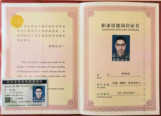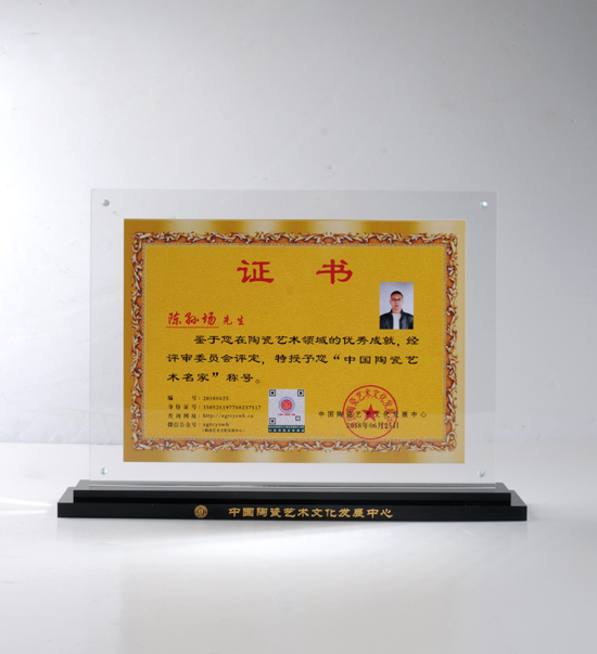 經(jīng)過10多年的積累,2017年陳孫場成立德化縣名古豐陶瓷有限公司,創(chuàng)辦“豐大師”品牌,創(chuàng)作出一系列汝瓷作品,其作品深受廣大客戶喜愛,多件作品榮獲金獎(jiǎng),作品《納福西施》榮獲2018年中國陶瓷藝術(shù)作品評比金獎(jiǎng)。2018年經(jīng)中國陶瓷藝術(shù)文化發(fā)展中心評定,被評為“中國陶瓷藝術(shù)名家”,2022年獲評“非遺(陶瓷)技藝傳承人”,廣受好評。