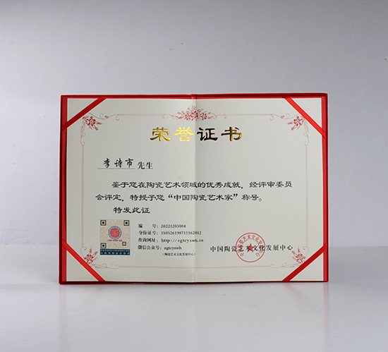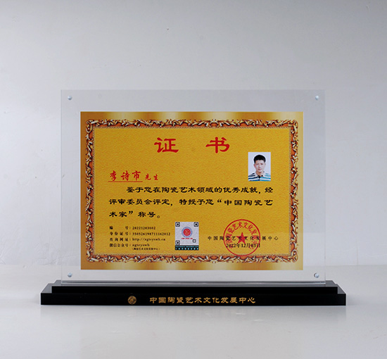 經(jīng)過多年的積累,李詩市創(chuàng)作出一系列優(yōu)秀作品,主要作品為茶器、藝術(shù)花盆、出口工藝品等,其作品深受廣大客戶喜歡,多件作品榮獲各評比金獎,2022年被中國陶瓷藝術(shù)文化發(fā)展中心評選為“中國陶瓷藝術(shù)家”。