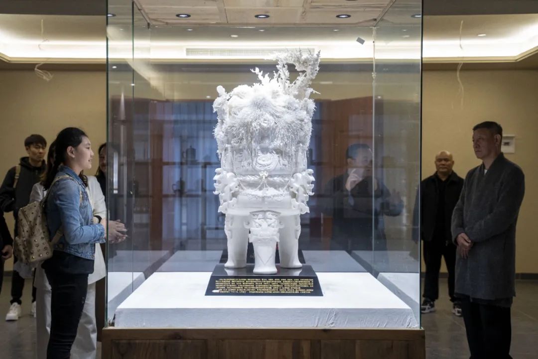 韓磊老師一行邊看邊聽,都為中國白陳仁海團隊所創(chuàng)作的一件件匠心之作贊嘆不已,在價值5.6億元、上海世博會鎮(zhèn)館之寶《世博和鼎》前,客人們贊嘆道:“30個人制作了3年,才碰巧燒出這一件呀,真難得!真不愧是‘千年一寶、世界瓷王’!”他們紛紛拿起手機拍照留念。