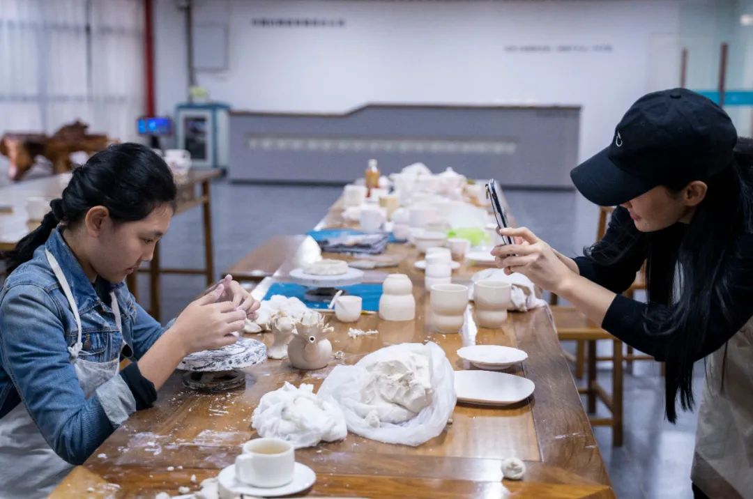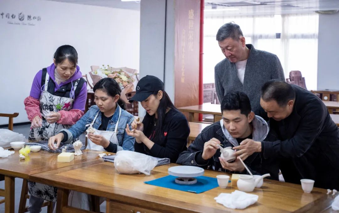 如此精美的“中國白”是怎樣制作出來的呢?參訪過程中,韓磊老師一行還興致勃勃的玩起了泥巴,參與到非遺傳承項目“中國白”陶瓷技藝的創(chuàng)作當中,現(xiàn)場歡聲笑語,其樂融融。