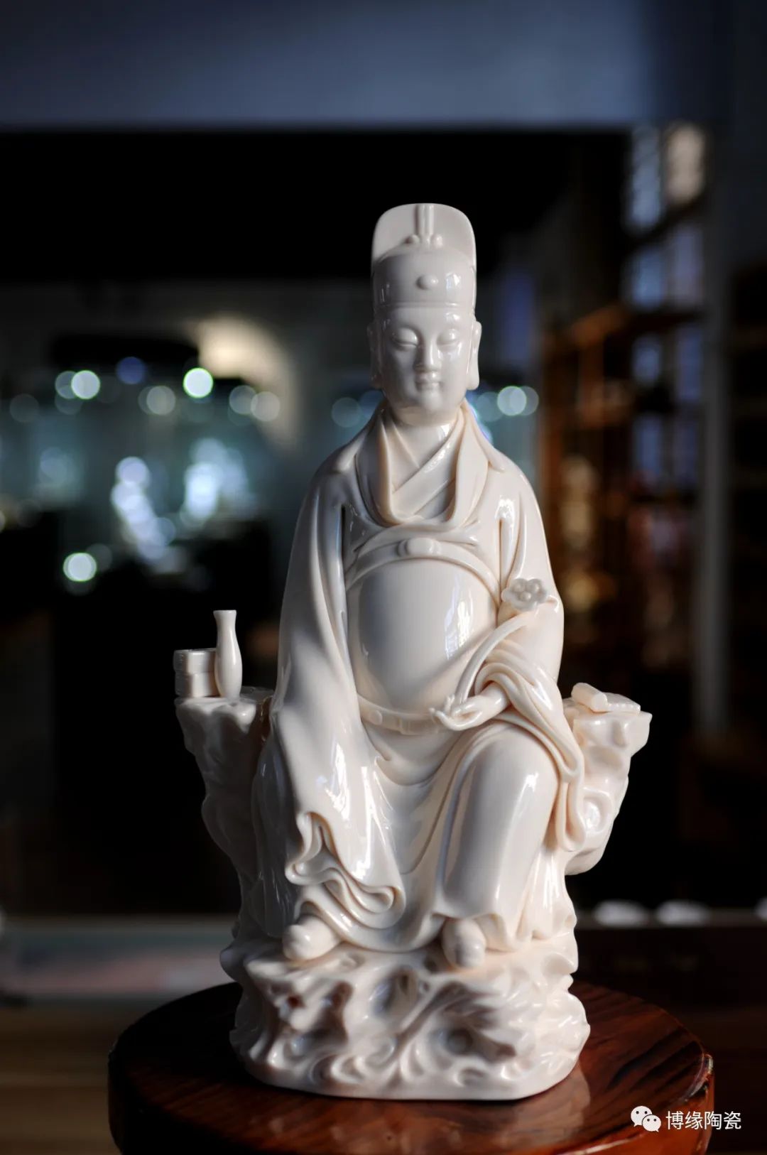 德化瓷器,以白瓷為最;白瓷之中,又以佛像為最。德化白瓷所塑佛像有性格鮮明、造型優(yōu)美、神態(tài)逼真、風(fēng)格洗練的特點。有一種單純的雕塑美和原材料的質(zhì)地美,最能體現(xiàn)佛教樸素、平和的思想。