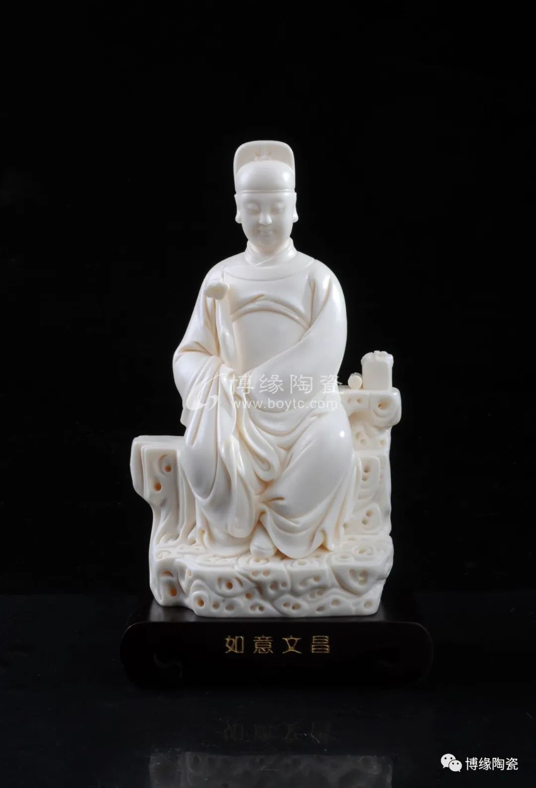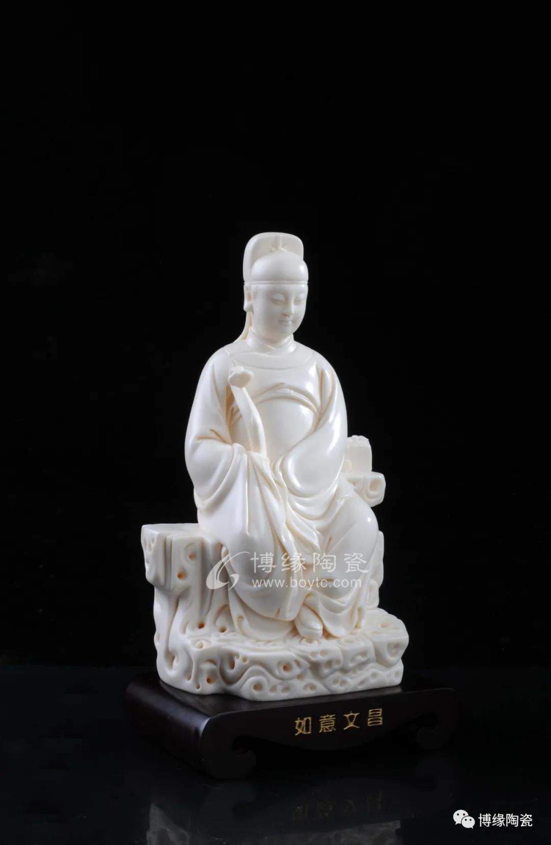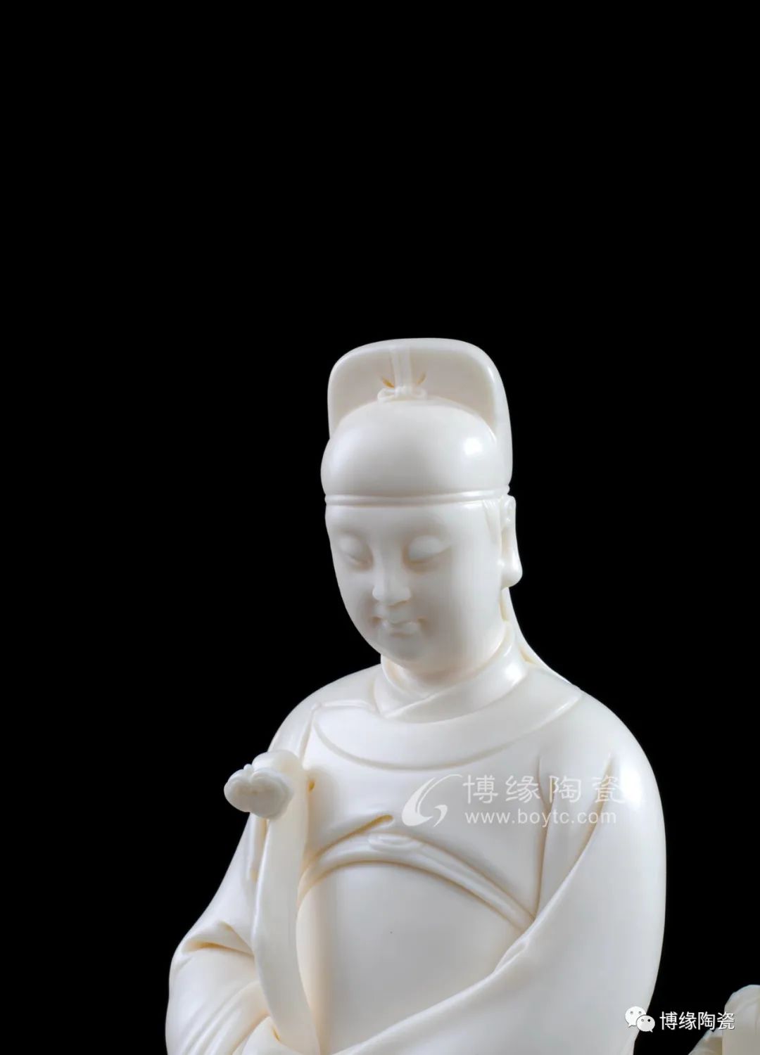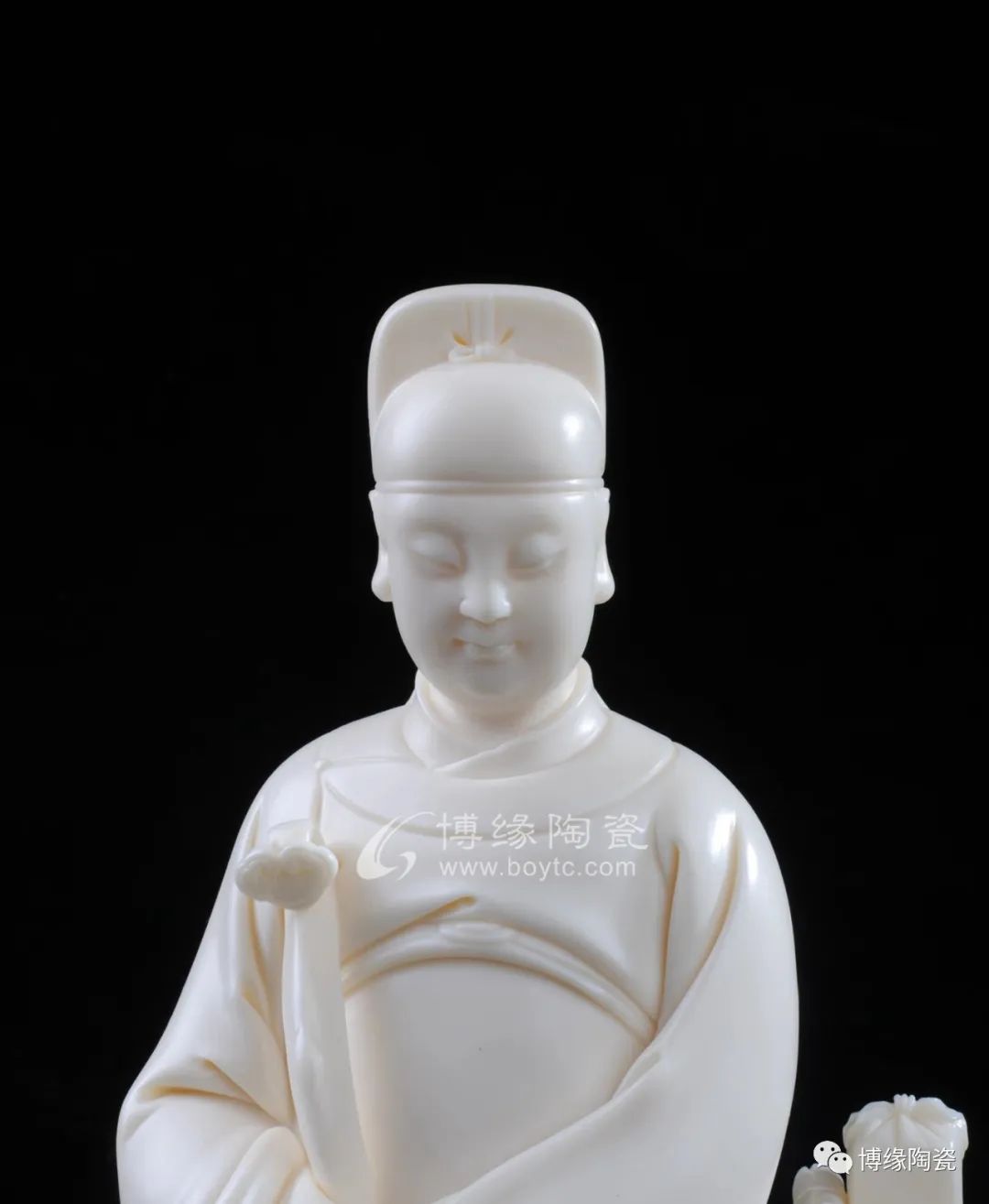 文昌帝君和藹慈祥即體現(xiàn)德化優(yōu)秀的傳統(tǒng)技法又融入許家家傳的“山湖祖”精雕細(xì)刻的創(chuàng)作手法。