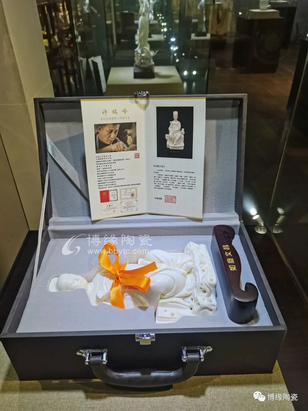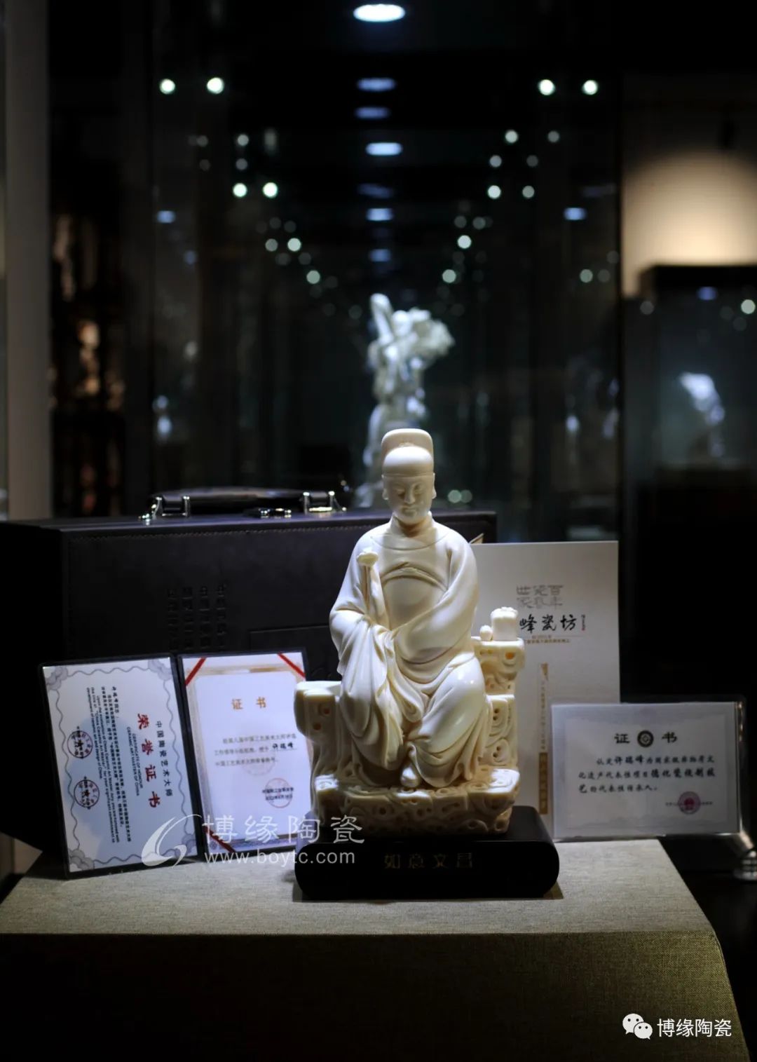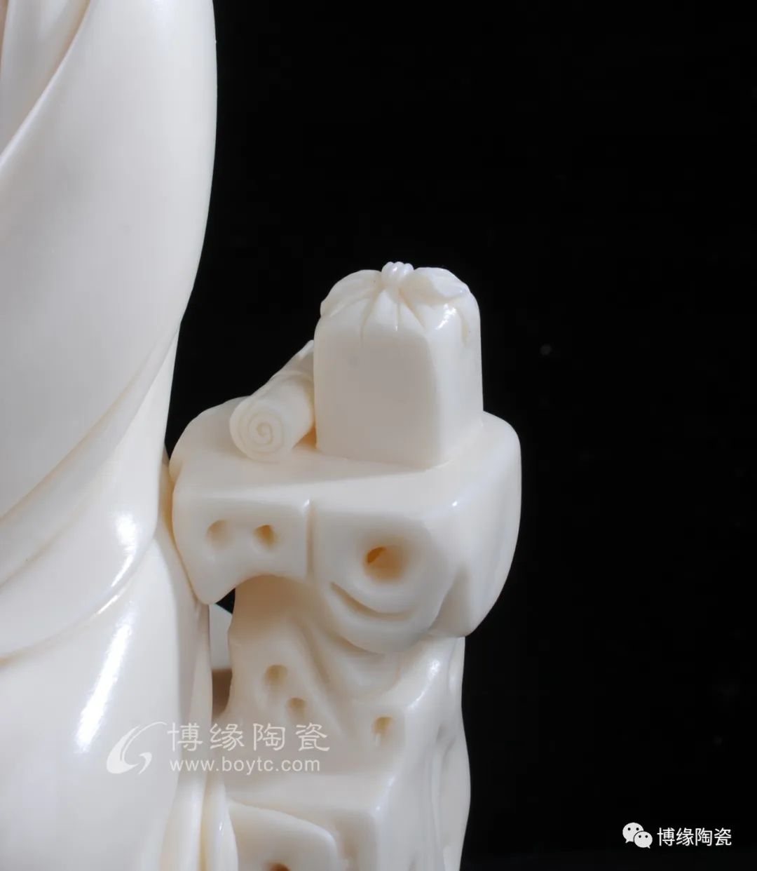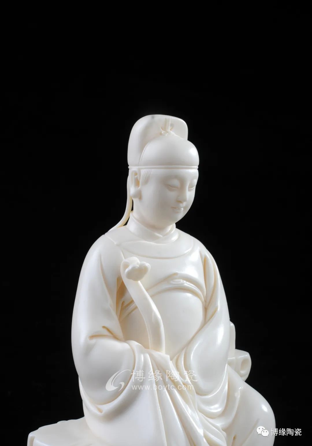文昌帝君和藹慈祥即體現(xiàn)德化優(yōu)秀的傳統(tǒng)技法又融入許家家傳的“山湖祖”精雕細(xì)刻的創(chuàng)作手法。