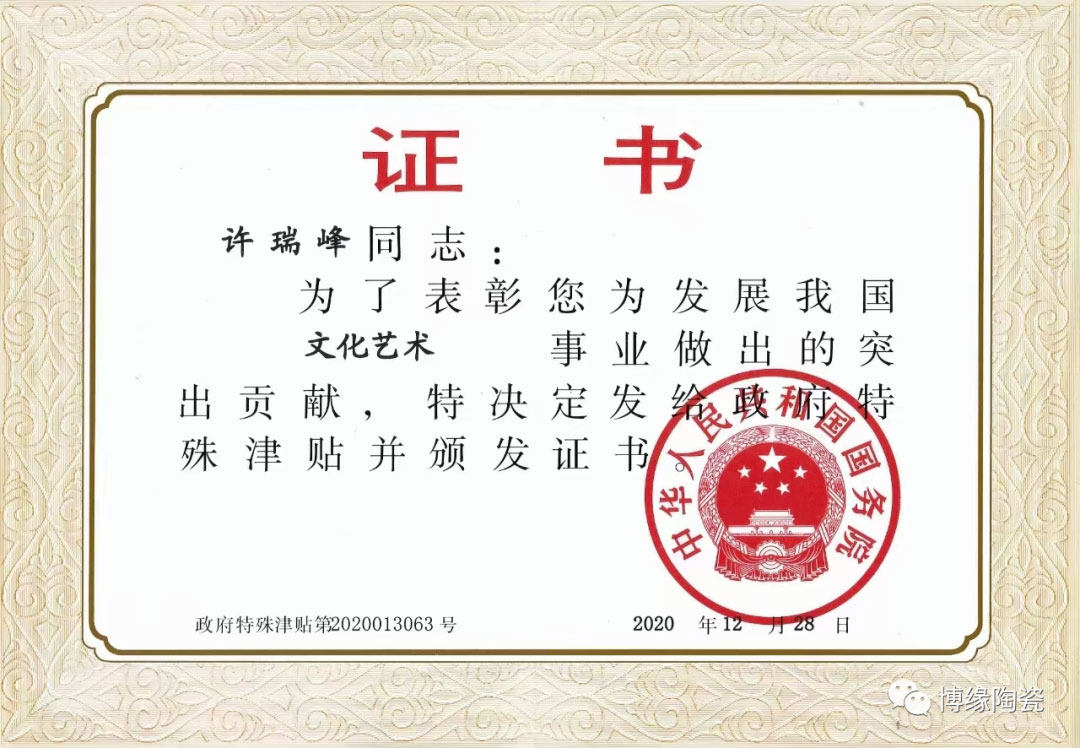 作品配有中國工藝美術(shù)大師許瑞峰收藏證書及榮譽(yù)證書