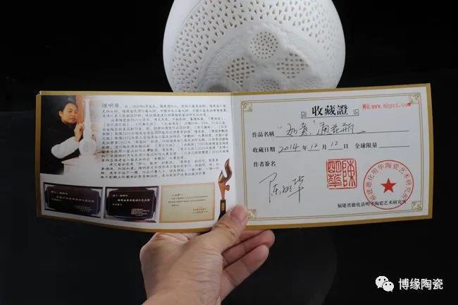 《如意通花》由中國(guó)陶瓷藝術(shù)大師陳明華設(shè)計(jì)創(chuàng)作。作品以德化溫潤(rùn)如玉的 “中國(guó)白”為胎質(zhì),經(jīng)1300多度高溫?zé),作品設(shè)計(jì)巧妙,雙耳以如意為造型設(shè)計(jì),線條流暢富有動(dòng)感,制作手法精妙、工序復(fù)雜,仿似在瓷中“剪紙”,瓷上“飛花”。整體清秀唯美,創(chuàng)意感足,作品底部落有大師手刻簽落款,兼具審美價(jià)值和收藏價(jià)值,是不可多得的雅作。是辦公、家居、書房裝飾擺設(shè)、禮贈(zèng)、收藏的好選擇。