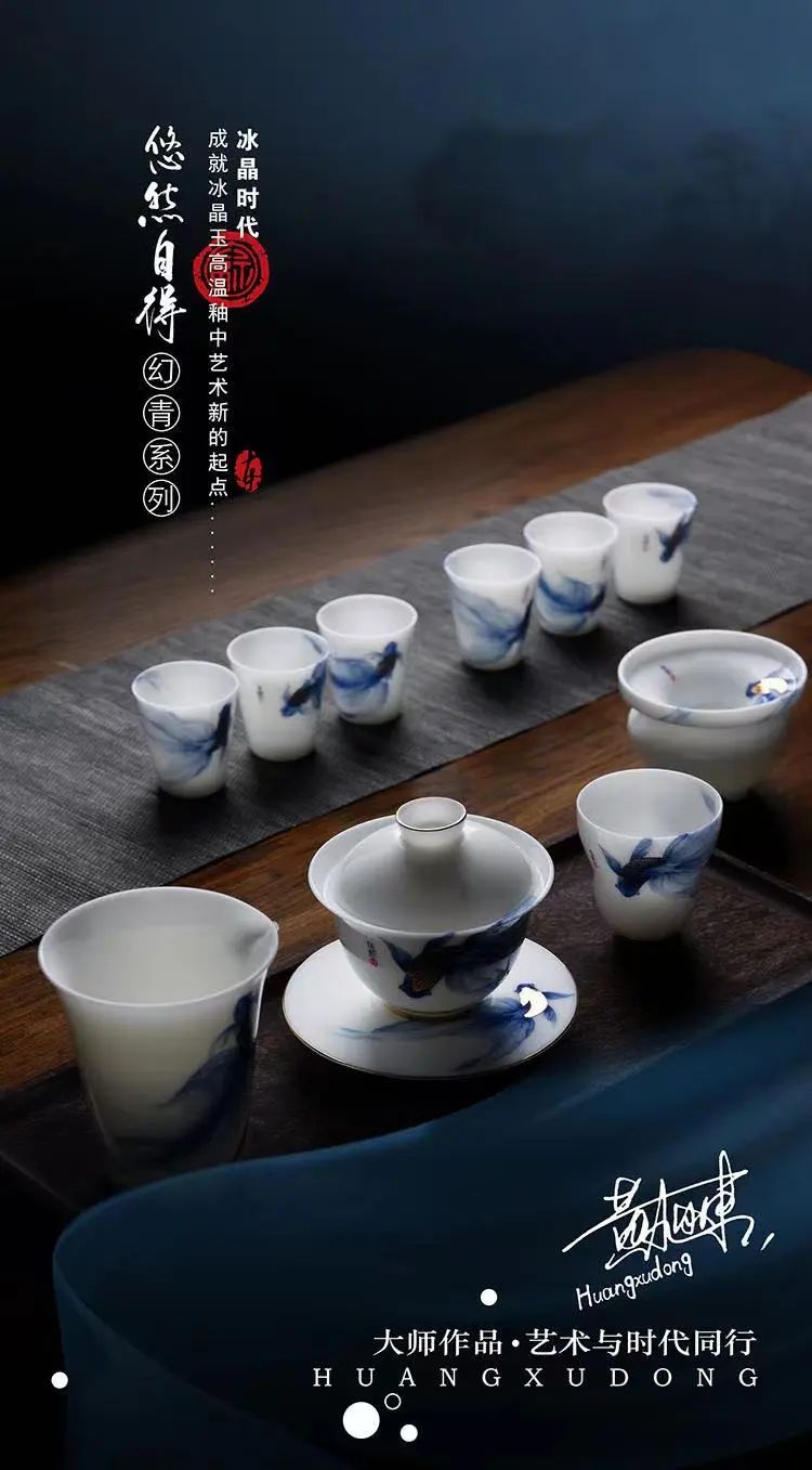 黃旭東用心思考茶與器的和諧之道。他充分利用自己花紙廠的資源,花費了大量時間潛心研究特殊的陶瓷花紙工藝,同時思考什么樣的材質裝飾可以為本已經完美的羊脂玉加分。如果設計材料毫無亮點則畫蛇添足、弄巧成拙。