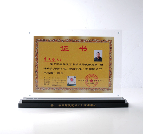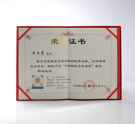 李文簪從小深受千年瓷都德化陶瓷文化熏陶,出生于一代“瓷圣”何朝宗故鄉(xiāng)瓷都德化潯中鎮(zhèn)后所,從小耳濡目染,對德化陶瓷產生濃厚興趣,也喜歡上了陶瓷及其燒制技藝。從小跟隨瓷都德化老藝人學藝,從藝30多年,熟練掌握泥料選配、器型設計、手拉坯、釉水配方、燒制技藝,專注茶品作品創(chuàng)作。經過多年創(chuàng)作,其創(chuàng)作出一系列茶器作品,作品器形豐富,款式新穎,深受廣大客戶及收藏愛好者喜愛,多件作品被評為金獎,2024年作品《龍躍鳳鳴紫砂茶壺》榮獲北京中國陶瓷藝術名家作品展金獎等。