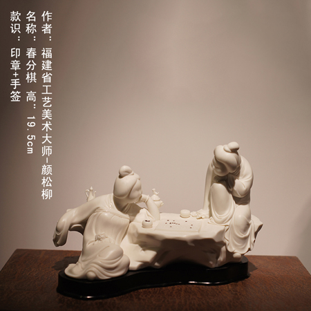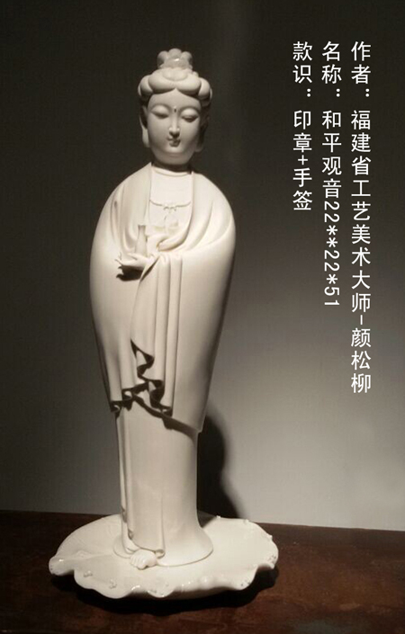 顏松柳,男,1977年8月出生,高級(jí)工藝美術(shù)師,高級(jí)技師,福建省技術(shù)能手,福建省工藝美術(shù)大師,中國收藏家喜愛的陶瓷藝術(shù)大師,F(xiàn)任德化瓷言坊藝術(shù)總監(jiān),泉州工藝美術(shù)學(xué)院客座教授,泉州市工藝美術(shù)協(xié)會(huì)理事,福建省工藝美術(shù)學(xué)會(huì)理事,中國陶瓷工業(yè)協(xié)會(huì)陶瓷藝術(shù)專業(yè)委員理事。1993年學(xué)藝于百年老字號(hào)“蘊(yùn)玉瓷莊”,1995年畢業(yè)于德化陶瓷職業(yè)技術(shù)學(xué)校,進(jìn)修于福建工藝美術(shù)學(xué)校雕塑系、中央工藝美術(shù)學(xué)院陶瓷系。2005年創(chuàng)立“瓷言坊”,期間為西安大唐芙蓉園設(shè)計(jì)制作大型組雕《召見使節(jié)》、作品《唐韻仕女》被西安市政府選贈(zèng)首次來訪的中國國民黨主席連戰(zhàn)和親民黨主席宋楚瑜(合作);為德化陶瓷博物館設(shè)計(jì)制作大型陶瓷浮雕壁畫《瓷國史話》(合作);2006年榮獲“中國收藏家喜愛的陶瓷藝術(shù)大師”稱號(hào), 作品多次獲得“百花獎(jiǎng)” 、“金鳳凰”、“爭(zhēng)艷杯”等專業(yè)藝術(shù)設(shè)計(jì)大賽金獎(jiǎng)。作品《春風(fēng)得意馬蹄疾》收藏于“中國工藝美術(shù)館”、“英國珍寶博物館”;《一葦渡江》收藏于“英國珍寶博物館”、“福建博物院”;《觀滄!肥詹赜“福建工藝美術(shù)珍品館”。