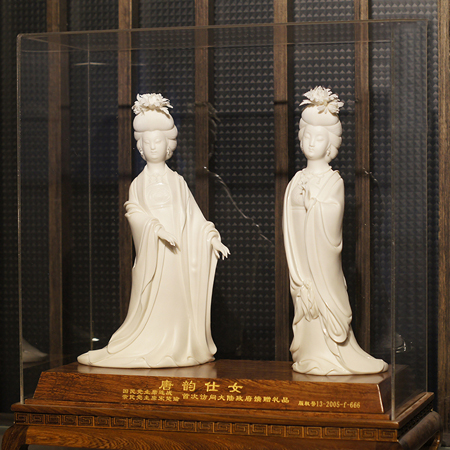 2004年10月《唐韻仕女》選贈(zèng)首次來訪的中國國民黨主席連戰(zhàn)和親民黨主席宋楚瑜(西安),為西安大唐芙蓉園設(shè)計(jì)制作大型組雕《召見使節(jié)》,(合作);