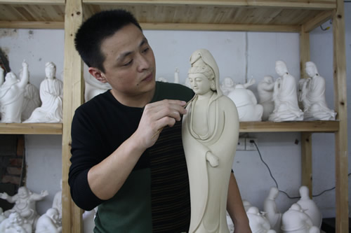 宗教雕塑第一人、明代陶塑家何朝宗是德化窯的代表性人物,是德化陶瓷人心中的祖師爺,其高超的陶瓷工藝仍流傳于世,F(xiàn)今,延續(xù)何派風格的工藝藝人仍數(shù)不勝數(shù),林建平就是其中一位。