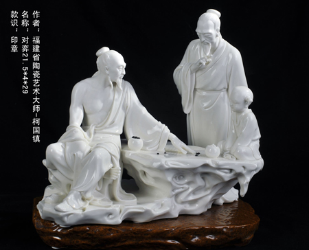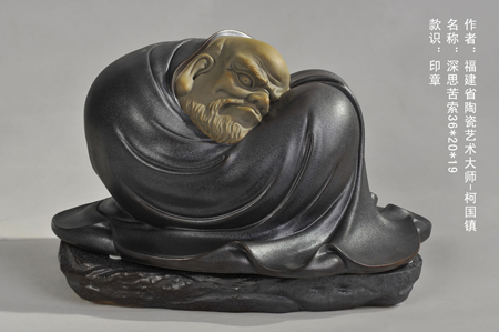 柯國(guó)鎮(zhèn),1967年出生于瓷都德化,師從國(guó)家級(jí)陶瓷藝術(shù)大師柯宏榮、陳桂玉夫婦,學(xué)習(xí)傳統(tǒng)陶瓷雕塑創(chuàng)作,掌握并能巧妙運(yùn)用各種技術(shù)。其作品造型粗獷中見精細(xì),構(gòu)思出奇制勝,用簡(jiǎn)單的藝術(shù)手法追求一種自然美和抽象美。