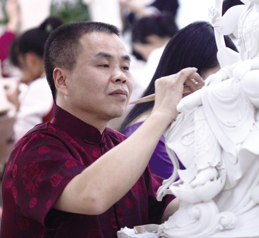 鄭雄文,山花陶瓷創(chuàng)始人、山花陶瓷黨支部書記、高級(jí)工藝美術(shù)大師、福建省陶瓷藝術(shù)大師,福建省陶瓷藝術(shù)專業(yè)委員會(huì)委員。1967年生于德化陶瓷世家,1984年創(chuàng)辦山花陶瓷。二十余年來(lái),遍訪名山古剎,拜謁高僧大德,結(jié)佛緣、悟禪理,以虔誠(chéng)的信仰鑄就靜心的藝術(shù)。麾下有百余名藝術(shù)精湛的瓷雕技師,不斷推出佛像、佛具、禮品等堪為傳世的經(jīng)典瑰寶。