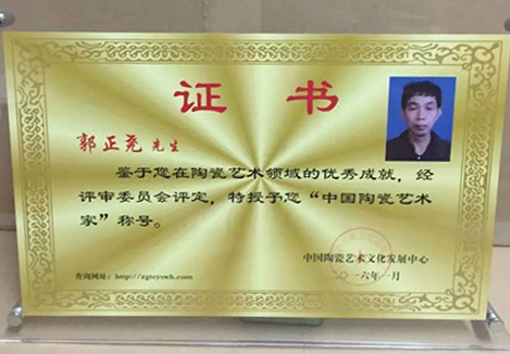 2016年經(jīng)中國(guó)陶瓷藝術(shù)文化發(fā)展中心評(píng)審委員會(huì)評(píng)定為“中國(guó)陶瓷藝術(shù)家”。