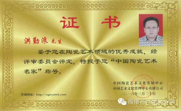 洪勤浪,藝名:布依仁,畢業(yè)于景德鎮(zhèn)陶瓷學(xué)院,江西省工藝美術(shù)家,江西省高級(jí)技師(國家一級(jí)),國家陶瓷雕刻一級(jí)工藝美術(shù)師,江西省工藝美術(shù)師,2016年獲“中國陶瓷藝術(shù)名家”稱號(hào),景德鎮(zhèn)市昌江區(qū)政協(xié)委員,景德鎮(zhèn)非物質(zhì)文化遺產(chǎn)(代表性)雕刻傳承人,輝煌中國書畫陶瓷藝術(shù)研究院研究員,中國陶瓷藝術(shù)文化發(fā)展中心景德鎮(zhèn)分中心主任,景德鎮(zhèn)市技校客座教授,景德鎮(zhèn)市陶瓷歷史文化研究會(huì)理事,景德鎮(zhèn)民間藝術(shù)家協(xié)會(huì)會(huì)員,景德鎮(zhèn)陶瓷藝術(shù)交流中心會(huì)員。