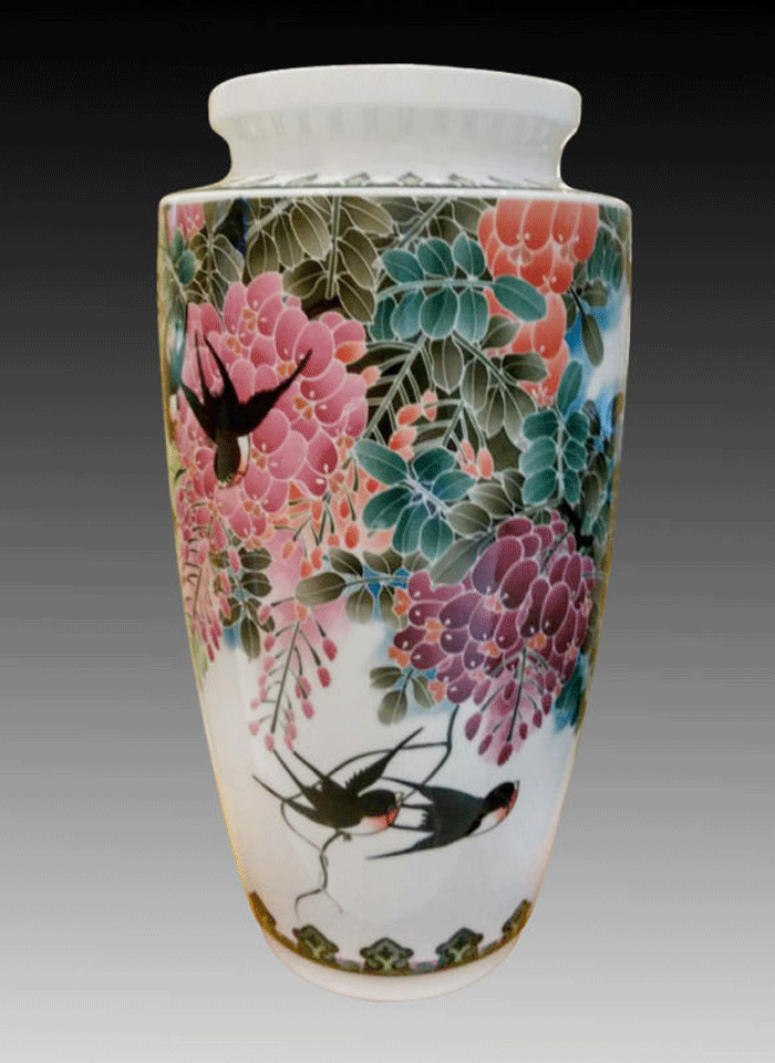 個人簡介: 陳大平,男,湖南醴陵人,1975年生,大專本科學歷,師從國家級美術(shù)大師湯清海門下,96年起從事陶瓷繪畫行業(yè)至今,擅長花鳥、走獸繪畫.
