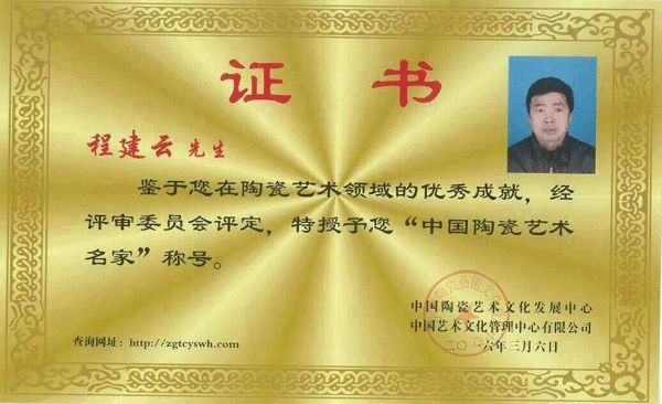 2016年經(jīng)中國陶瓷藝術(shù)文化發(fā)展中心評審委員會評定為“中國陶瓷藝術(shù)名家”