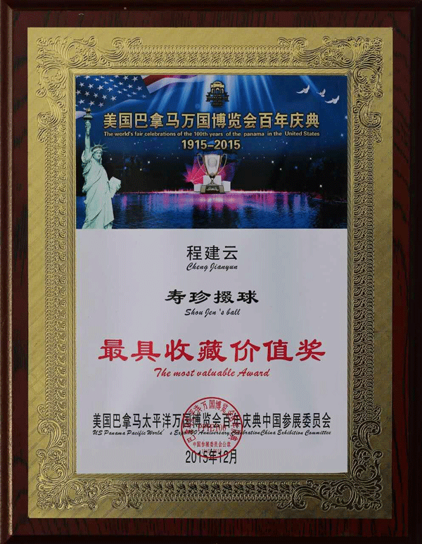 2015年作品榮獲美國巴拿馬萬國博覽會百年慶典巴拿馬最具收藏價值獎
