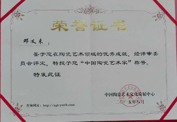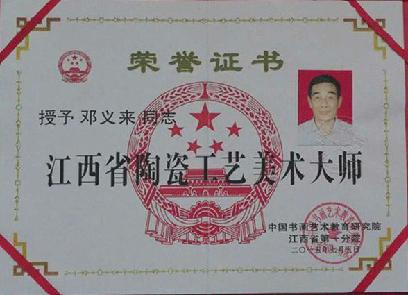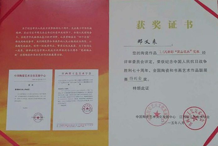 幾十年來(lái)的陶瓷藝術(shù)繪畫讓鄧義來(lái)的獲得的不僅是陶瓷藝術(shù)技法上的嫻熟,更是讓他獲得不少獎(jiǎng)項(xiàng)。