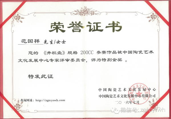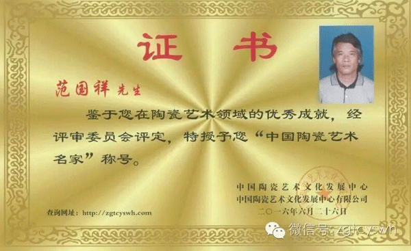 2016年經中國陶瓷藝術文化發(fā)展中心評審委員會評定為“中國陶瓷藝術名家”。 |