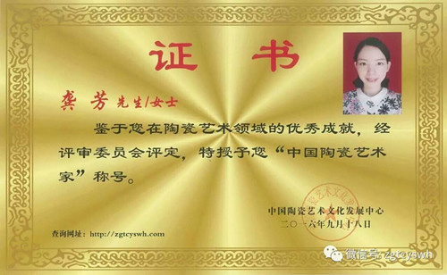 2016年經(jīng)中國陶瓷藝術(shù)文化發(fā)展中心評審委員會評定為“中國陶瓷藝術(shù)家".