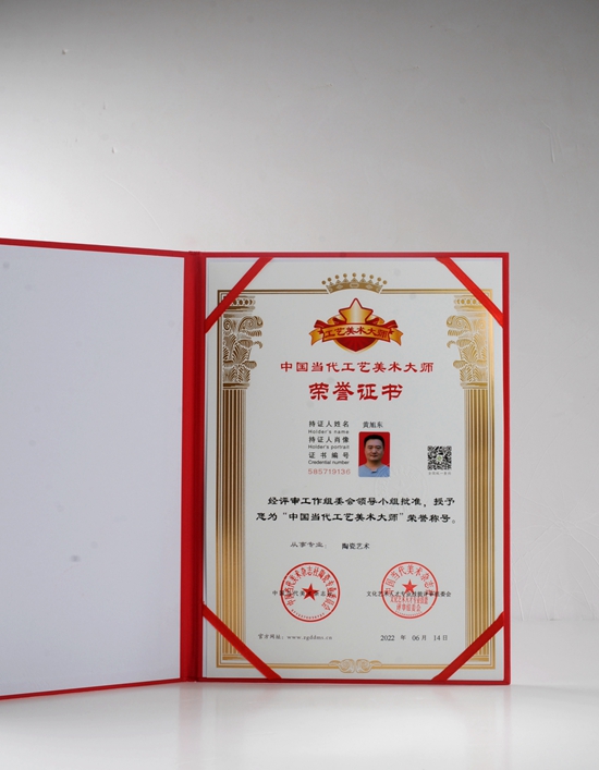 黃旭東,出生于1978年,中國當代工藝美術大師、中國陶瓷藝術非遺傳承人、中國陶瓷藝術家、高級工藝美術大師,滿懷著對陶瓷藝術的熱愛與向往,于2000年起從事陶瓷的藝術創(chuàng)作,經(jīng)多位名家指導,再傳承傳統(tǒng)工藝技藝的基礎上不斷做創(chuàng)新的研究探索,結合新材料的運用,再浮雕圖案繪制領域方面形成了獨特的創(chuàng)新,并融合自身對美學的理解,另辟蹊徑獨具異格,其作品設計精美、構思巧妙、精致立體,富有極深的藝術感染力,在各大賽事評選中屢獲殊榮,深受各界一致好評。