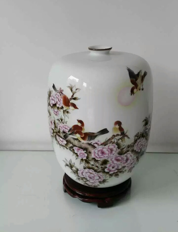 作者簡介: 王小英:1956年出生, 江西省景德鎮(zhèn)人,祖籍安徽黟縣,現(xiàn)就職于景德鎮(zhèn)陶瓷設(shè)計(jì)研究院。江西高級工藝美術(shù)師,市級非物質(zhì)文化遺產(chǎn)項(xiàng)目“景德鎮(zhèn)手工制瓷技藝--新彩瓷繪制”代表性傳承人。王小英出生于景德鎮(zhèn)陶瓷世家,伯父王錫良是當(dāng)代陶瓷藝術(shù)家,受家庭環(huán)境熏陶,王小英自幼學(xué)畫,1975年進(jìn)景德鎮(zhèn)藝術(shù)瓷廠工作,主攻花鳥,其人物、山水畫也頗具特色,作品追求文雅清麗的意境,耐人尋味。