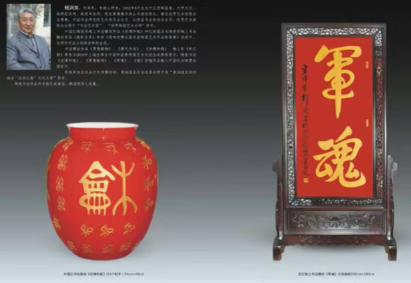 作者簡介: 楊潤泉,千年瓷都景德鎮(zhèn)、高級書法師、經(jīng)濟師、陶瓷、書法藝術(shù)家、中國陶瓷藝術(shù)名家 陶瓷書法《世博和瓶》、《厚德載物》、《軍魂》、《!匪姆髌份d入中國紀念郵票全國發(fā)行。積極參加亞運會文化傳播活動。第16屆亞運會組委會授予其“第16屆亞洲運動會 ‘亞洲之路’ 文化大使”稱號。