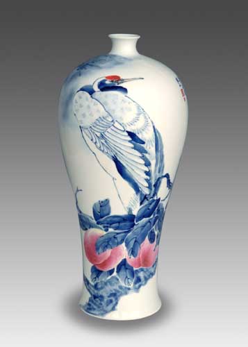 師從余翰青教授,擅長(zhǎng)青花和粉彩裝飾,又有幸得到當(dāng)時(shí)還在世的珠山八友中的王大凡、劉雨芩和“青花大王”王步指點(diǎn),技藝上得到飛躍進(jìn)步。在繼承前賢的基礎(chǔ)上,開拓進(jìn)取一破傳統(tǒng)的墨分五色之風(fēng),顯示一種渾厚莊重、明快活潑風(fēng)格,因而提高了青花藝術(shù)表現(xiàn)力。作品既受前輩名家的影響,又有民間青花的韻味,形象生動(dòng)俊秀,筆力蒼勁疏宕 ,分水淋漓清澈,構(gòu)圖簡(jiǎn)潔空靈,頗得中國(guó)畫筆情墨趣。不拘泥青花各種不同色階層次,或渾厚莊重、明快活潑,或清秀淡雅 ,風(fēng)格獨(dú)特,得到了社會(huì)各界好評(píng),輿論界譽(yù)他為當(dāng)代青花藝術(shù)大師。作品先后被北京珍寶館,上海博物館、景德鎮(zhèn)陶瓷館珍藏。