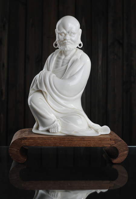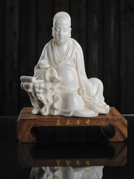 【個(gè)人經(jīng)歷】 本人生長(zhǎng)在陶瓷世家,從小酷爰美術(shù)陶瓷,1980年在泉州市陶瓷科學(xué)技術(shù)研究所,并師從著名瓷雕老藝人陳其泰習(xí)藝數(shù)年,得到技藝真?zhèn)鳎?7年創(chuàng)辦明玉陶瓷研究所,99年結(jié)業(yè)于中央工藝美院陶瓷雕塑設(shè)計(jì)系,現(xiàn)為中國(guó)藝術(shù)研究院訪問學(xué)者。從藝三十幾個(gè)春秋,其擅長(zhǎng)傳統(tǒng)風(fēng)格結(jié)合現(xiàn)代藝術(shù)特征,形成自己風(fēng)格,創(chuàng)作有;觀音、彌勤、羅漢、關(guān)公、文昌帝、仕女等,歷史人物祌仙佛像故事及現(xiàn)代生活題材等作品,日用品采用手拉坯制作的香爐、花瓶、茶壺、酒具、文房四寶等。許多作品獲得國(guó)內(nèi)外金獎(jiǎng)19項(xiàng)、銀獎(jiǎng)7項(xiàng)、銅獎(jiǎng)6項(xiàng)。作品深受藝術(shù)愛好者爭(zhēng)購及各大博物館的珍藏。長(zhǎng)期以來潛心于藝術(shù)刨作又收藏德化窯古瓷與研究,現(xiàn)收藏品兩千余件整理形成館系,在2005年創(chuàng)辦“瓷藝堂”古瓷展覽館。學(xué)術(shù)理論總結(jié)撰寫十多編論文的發(fā)表,編著《德化窯古瓷珍品鑒賞》、《明清德化白瓷》等書。《十六羅漢》,創(chuàng)作于1993年春,榮獲永德信、明康文教基金會(huì)第一屆陶藝金陶獎(jiǎng)特別獎(jiǎng);