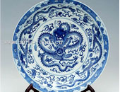 青花云龍紋折邊盤