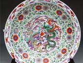 青花斗彩龍鳳纏枝紋折邊盤