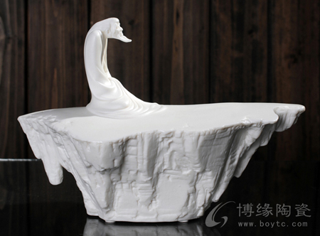 作品以德化特有的溫潤如玉的“中國白”為胎質(zhì),純手工制作,所塑人物性格鮮明,神態(tài)逼真,造型優(yōu)美,風格洗練。
