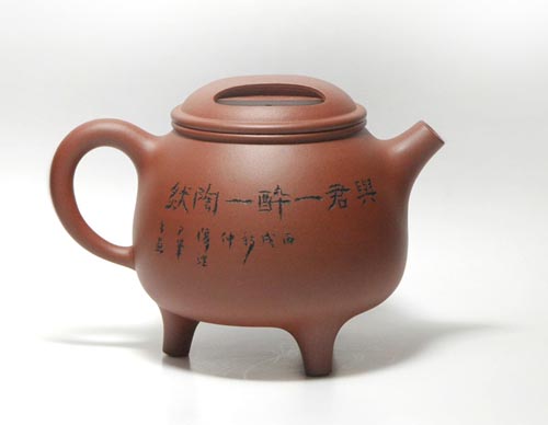 · 三足牛蓋寶鼎壺,以“鼎”為創(chuàng)作主題,以“土”為本體語言,融自然之型與藝術(shù)之魂為一體,濃厚的歷史,歲月積淀的文明,均在線條的承轉(zhuǎn)合宛里漸次蘇醒。三足頂立,壺身巍巍。泥色清純?nèi)峒?xì),些微光澤隱沒。壺蓋的造型巧心獨具,如牛張鼻孔,凝神時似聞嗬嗬聲。流與把的探出收回,似書法的起手與收勢,有酣然流暢美態(tài)。