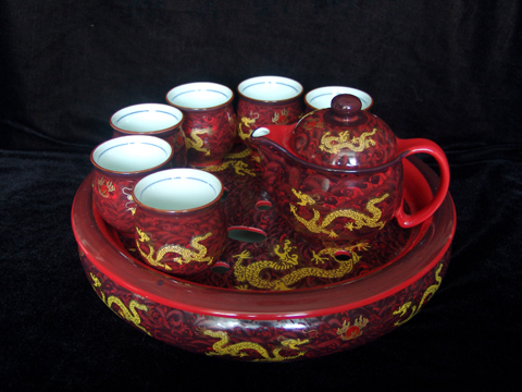13寸紅釉金龍大茶船茶具組