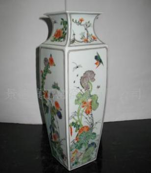 古彩四季花卉四方瓶