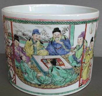 粉彩春夜桃李園圖筆筒