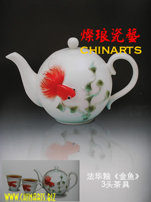 基本信息:商品編碼:CJ-FH-LX-D001商品名稱:法華釉《金魚》3頭茶具商品規(guī)格:3頭(1壺2杯)包裝材料:禮品錦盒