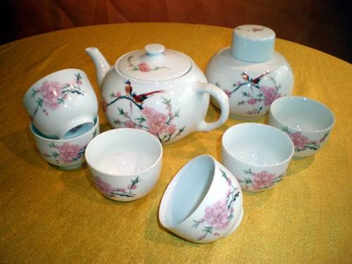 藝佳陶瓷水點桃花茶具