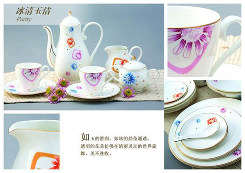 【品名】冰清玉潔餐具茶具 【材質(zhì)】高白強(qiáng)化骨瓷,經(jīng)過1380度高溫?zé)贫,聲音清?/span> 【規(guī)格】60頭 【等級】一等精品 【包裝】禮品盒