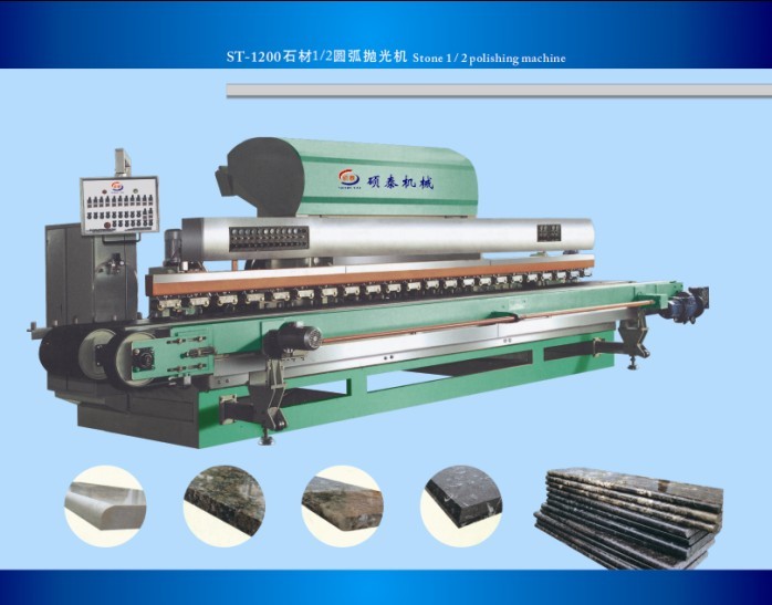 產(chǎn)品名稱:ST-1200石材1/2圓弧拋光機(jī) 產(chǎn)品說(shuō)明: ST-1200石材1/2圓弧拋光機(jī),半圓拋光機(jī)是我公司研制成功的優(yōu)質(zhì)產(chǎn)品,它突破了原有圓弧拋光機(jī)只能拋1/4圓弧的局限,拋光圓弧邊范圍達(dá)到1/2(180度),擴(kuò)大了加工范圍,可以加工半圓邊的臺(tái)面板及加厚樓梯踏板。本機(jī)為多功能拋光機(jī),對(duì)直邊、斜邊、圓弧邊的加工過(guò)程全自動(dòng)動(dòng)作,加工厚度達(dá)50mm,對(duì)不同寬度的板材也可連續(xù)生產(chǎn),在石材深加工方面,應(yīng)用非常廣泛,可作為一臺(tái)直線磨邊拋光加工中心使用。 型號(hào):ST-1200(180度) 拋光磨頭數(shù)量(pc):10(12) 拋光磨頭直徑(mm):Φ100 倒角磨邊輪數(shù)量(pc):5 倒角磨邊輪直徑(mm):Φ100(200) 工作寬度(mm):200-1200 加工厚度(mm):15-50 拋光速度(m/min):0.4-1 耗水量(L/min):150 耗氣量(L/min):80 總功率(kw):26 外形尺寸(m*m*m):7.5*2.3*2.2 重量(kg):6000 |