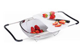 品牌: 虹泰 瓜果蔬菜等食材可以置于籃內(nèi),將伸縮籃展開后置于水槽兩端,沖洗籃內(nèi)的食材或瓜果。洗凈后可將籃內(nèi)雜質(zhì)丟到垃圾桶。本品最大的特點(diǎn)就是在洗凈瓜果或蔬菜的同時(shí),不含果皮,菜葉的清水會(huì)過濾到水槽內(nèi),從而節(jié) 約用水。選配的小菜板可直接裝置在籃子上,切塊分裝更簡(jiǎn)單。無論在廚房或是在客廳都會(huì)得心應(yīng)手。 |