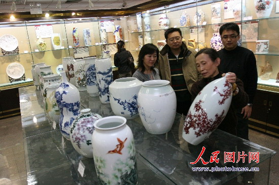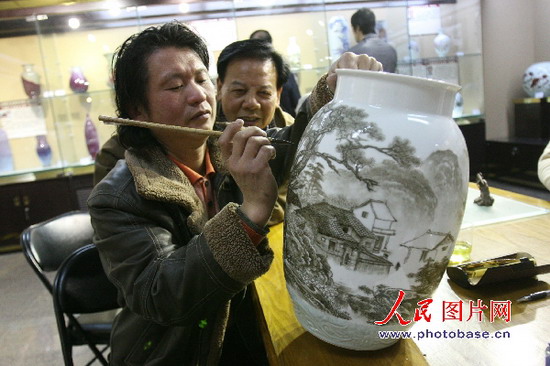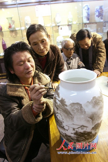 12月6日,來(lái)自江西景德鎮(zhèn)高級(jí)工藝美術(shù)師劉敏現(xiàn)場(chǎng)進(jìn)行瓷繪表演。 版權(quán)作品,請(qǐng)勿轉(zhuǎn)載。