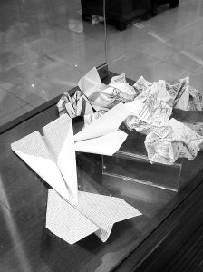 此次展覽還展示了世界現(xiàn)代陶瓷藝術(shù)發(fā)展至今,藝術(shù)語境的改變。從過去的唯美、實用向關(guān)注生活邁出了一大步。比如,“紙飛機”不僅讓人聯(lián)想到兒時的折紙游戲,倍感親切,藝術(shù)家在“紙”上印滿了二進制的數(shù)字組合,還形象表述了在網(wǎng)絡(luò)時代,作為一代代延續(xù)情感和信息來往的書寫信件逐漸消失,而網(wǎng)絡(luò)情感卻又像紙飛機那樣薄得脆弱。