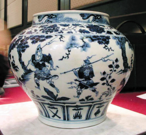 元青花瓷尤以人物畫最為珍貴。2005年,一件名為“鬼谷下山”(上圖)的元代青花圖瓷罐曾在倫敦拍出1568.8萬英鎊的高價,從而創(chuàng)下當(dāng)時中國藝術(shù)品拍賣的最高成交價。