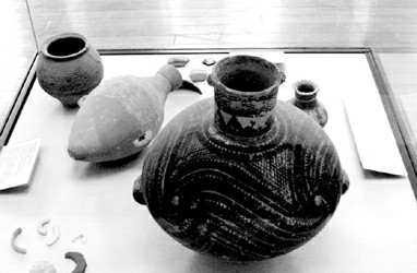 馬家窯彩陶位于進(jìn)館的右側(cè),我身旁的老外帶著孩子,不住地贊嘆馬家窯彩陶的精美。遠(yuǎn)古文明與人們的生活息息相關(guān),它們幾乎都傍水而生。懷著對(duì)滔滔江水的崇拜和敬畏,先民們把自己的感受真切地描繪在彩陶上。我喜歡彩陶上那流暢自然的線條,它帶給我的不僅是流動(dòng)的節(jié)奏和妙不可言的韻律,而且透露了先民們的生活情況和生活理念。