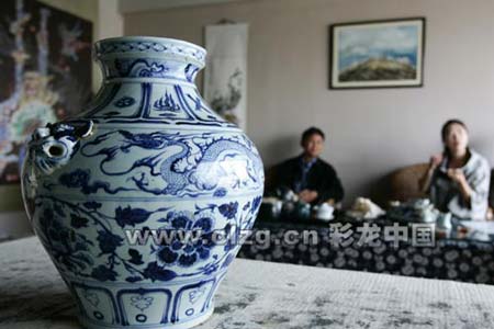 云南藏家收藏的價(jià)值上千萬(wàn)元青花瓷 記者 李振宇/攝