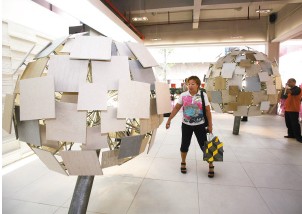 圖為中國陶瓷產(chǎn)業(yè)總部基地內(nèi)獨特設(shè)計的瓷磚潮流新品
